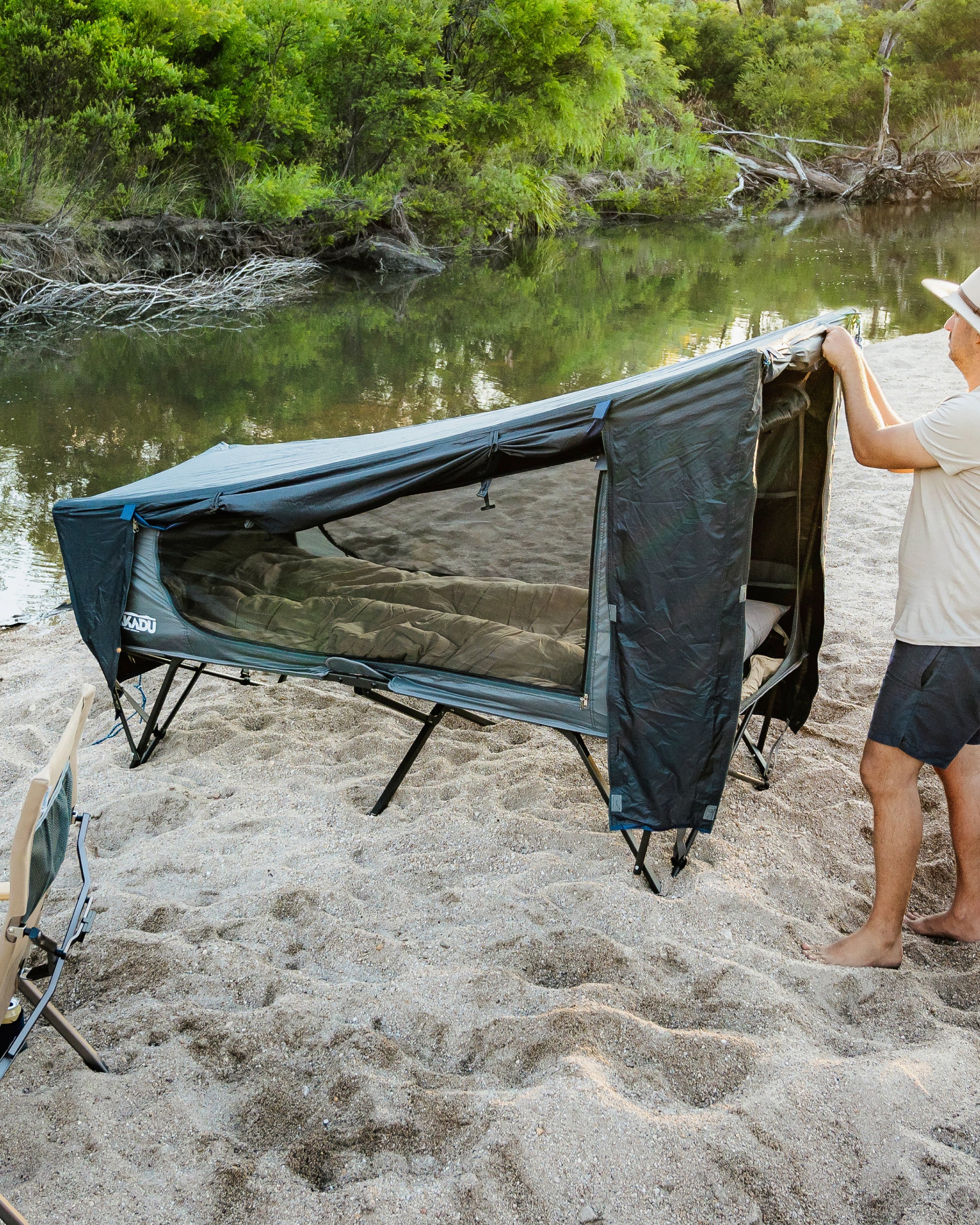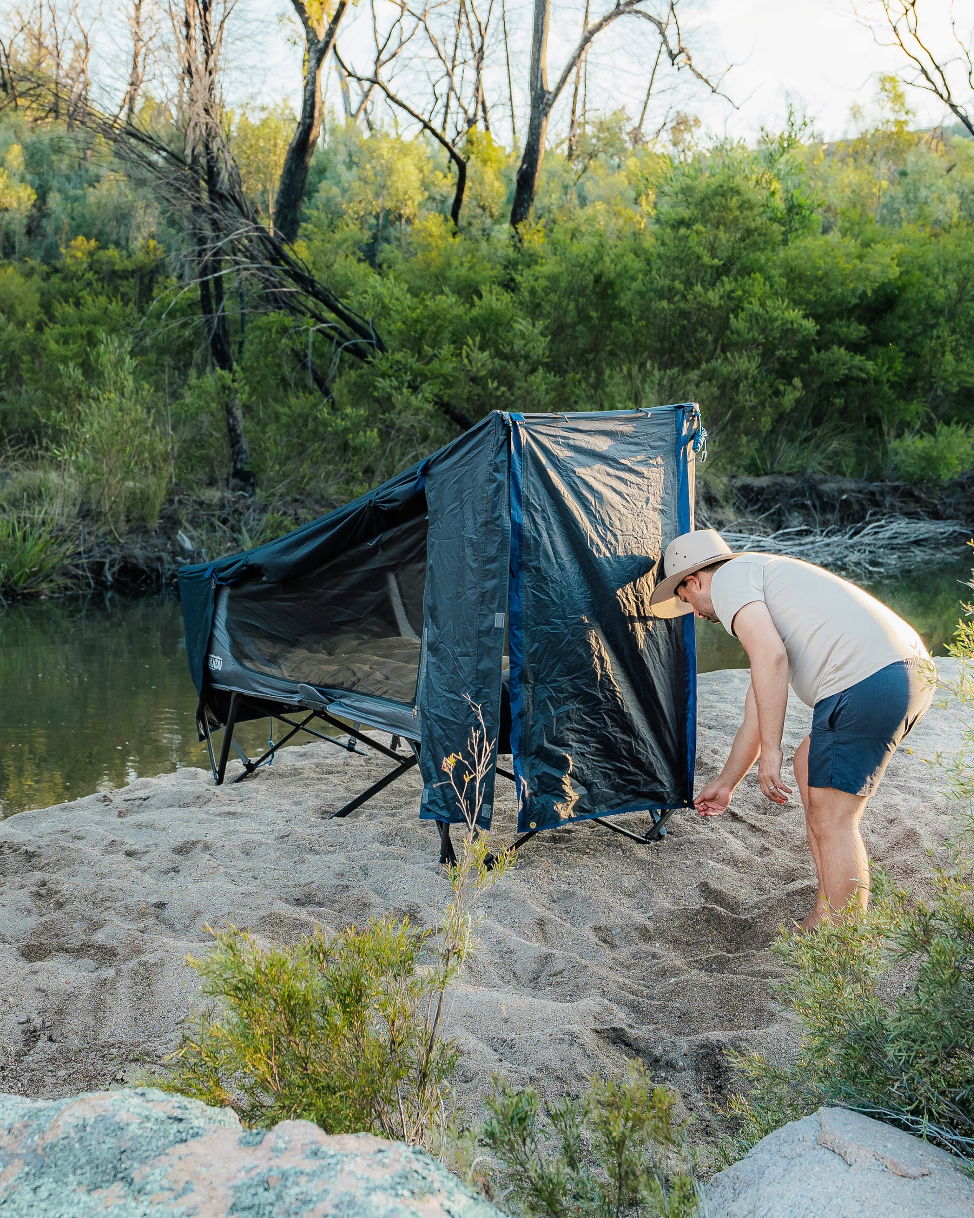 Perfect for solo adventurers, this all-in-one cot tent keeps you cool, blocks 95% of light, and sets up in seconds - no assembly needed! The BlockOut® tech drops temps by up to 20°F, while the No-See-Um mesh keeps mozzies out. Stay dry with a waterproof flysheet, and customize your setup with included awning poles. Whether you’re offroad or in the outback, enjoy a raised, comfy sleep without the fuss.