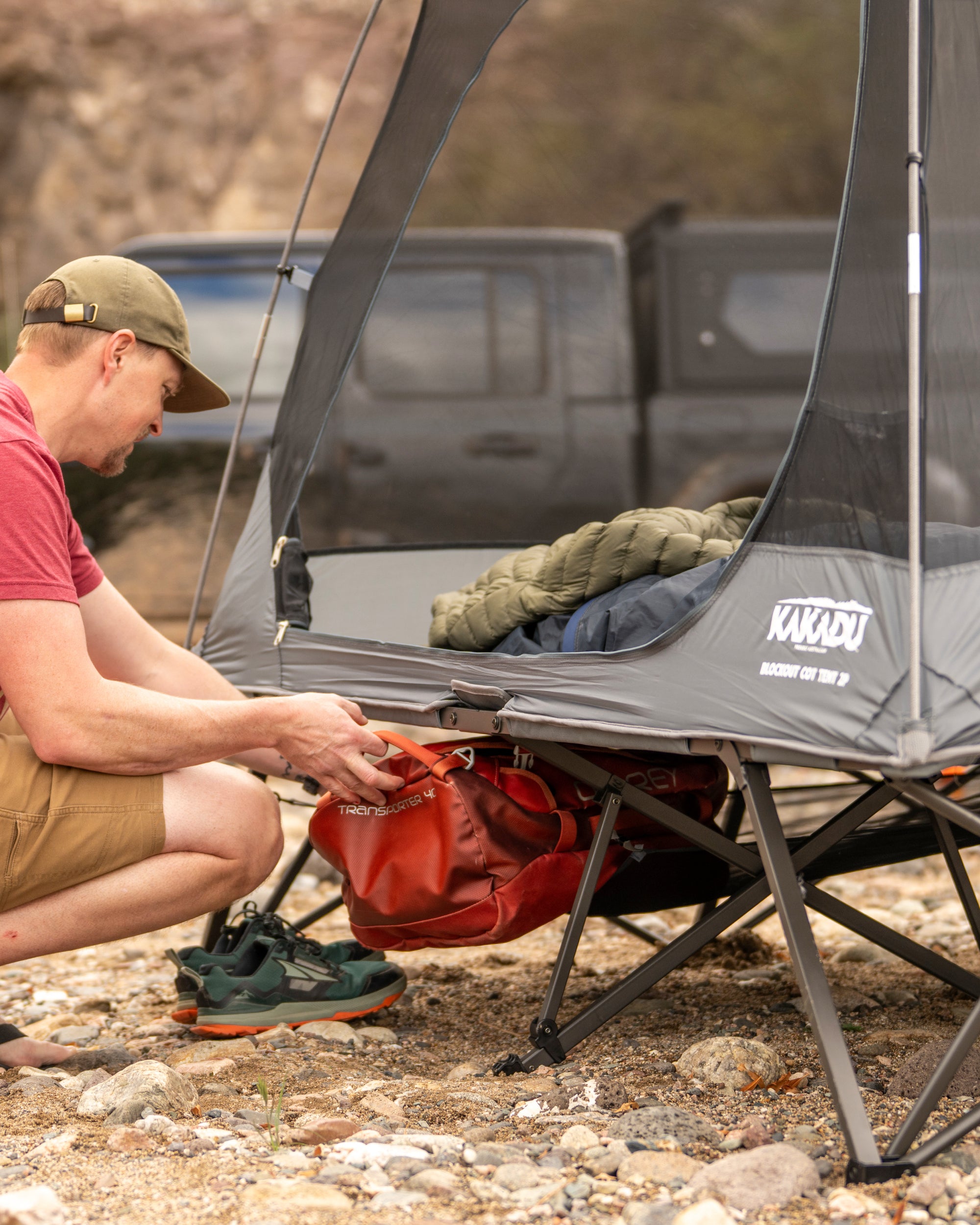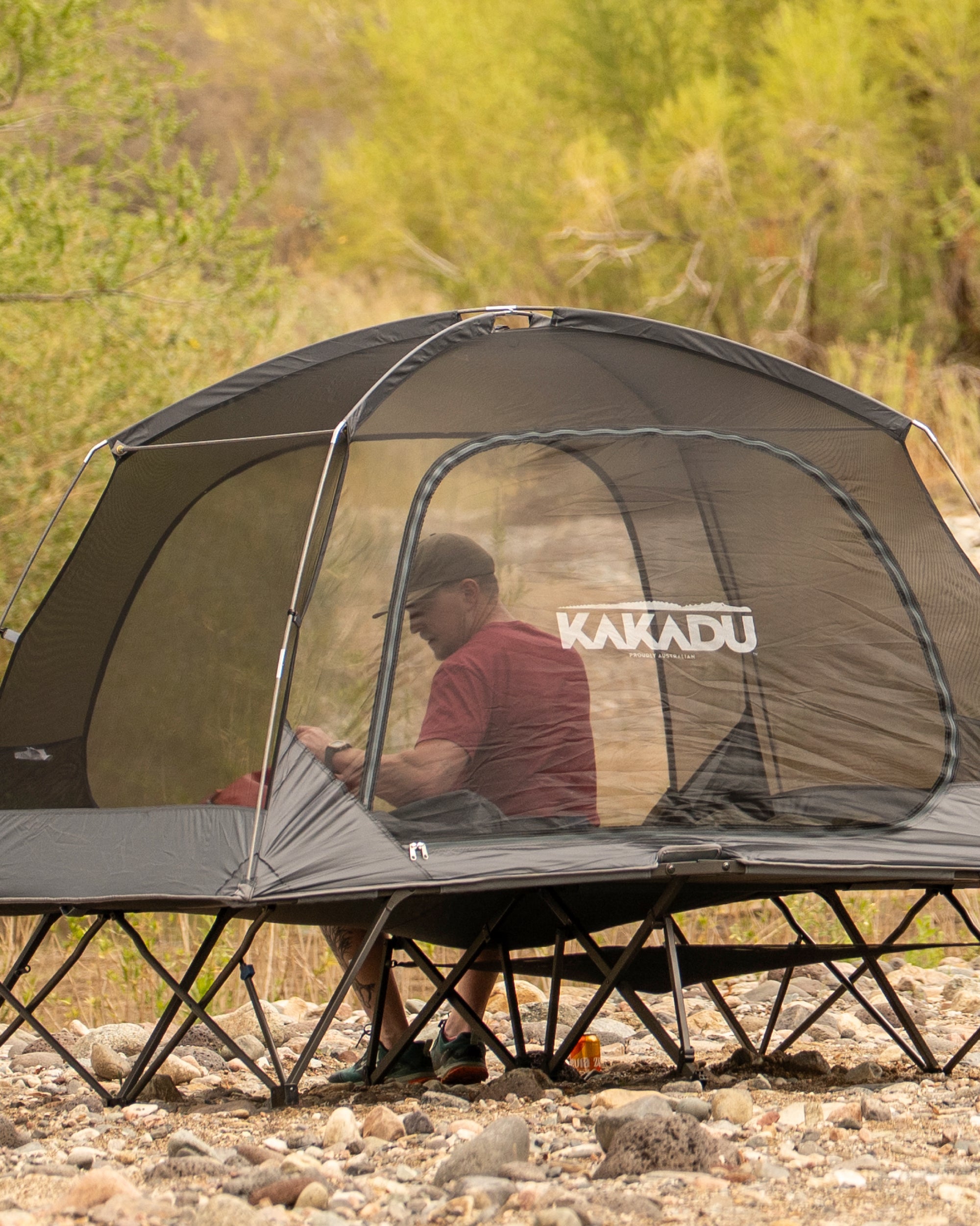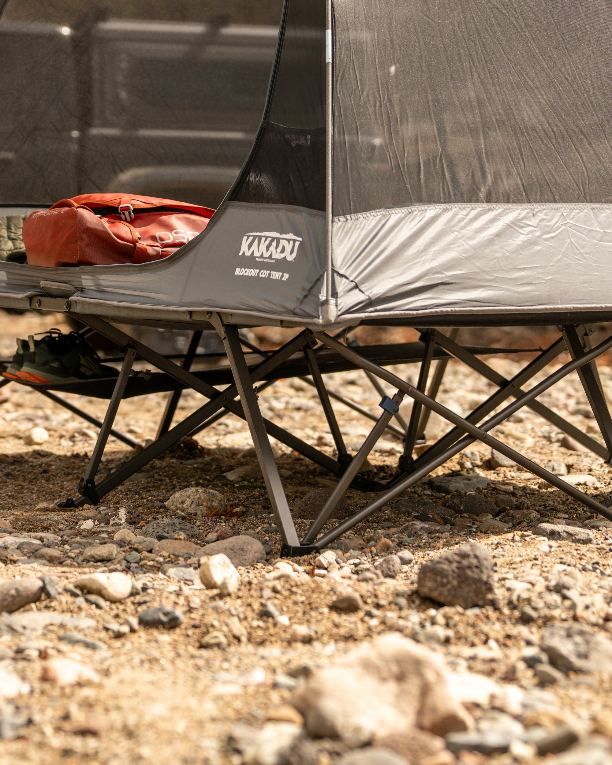 The Kakadu BlockOut® Cot Tent 2P takes your camping comfort to new heights—literally. With no assembly required, the easy-fold stretcher frame sets up in seconds, giving you a spacious, elevated shelter that’s ready to go when you are.