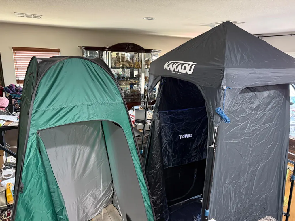 With Fast Frame™ technology, setup is quick and hassle-free. BlockOut® fabric enhances privacy, while multiple shower hose ports and a bump-out storage space ensure seamless use with the Kakadu Outback Shower. The clip-in PE floor with drain mesh keeps water under control, and the internal toiletry organizer, towel rack, and toilet paper holder add extra convenience. A water-safe laundry hamper keeps clothes dry, and the unique locking zip feature provides added security.